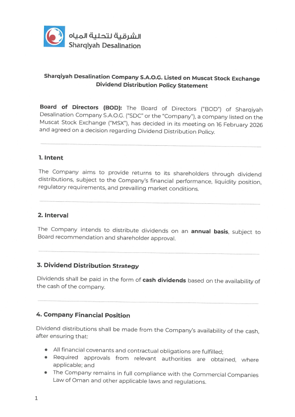Dividend Distribution Policy Statement